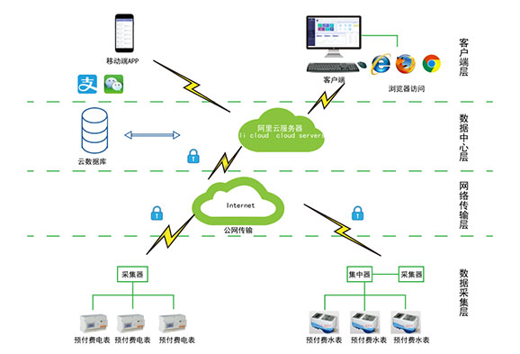 對于分布不同省、地市或同地市不同區(qū)域的連鎖商業(yè)、集團、百貨、門店、物業(yè)、院校等業(yè)務(wù)分散,要求集中管理、線上支付,低額提醒、欠費告警。但常規(guī)的本地插卡付費、本地預(yù)付費并不能完全滿足客戶管理需求,預(yù)付費云平臺應(yīng)運而生。AcrelCloud-3200水電預(yù)付費云平臺無縫集成商業(yè)、物業(yè)公司、集團企業(yè)、院校等分散布置的安科瑞DDSY/ADF系列電子式預(yù)付費電能表、閥控智能水表等,提供微信、支付寶、銀聯(lián)等可選的在線支付方式,大大方便了用戶充值、圈存,提供預(yù)警和充值、退費、電能消耗等記錄查詢,方便用戶和管理方的數(shù)據(jù)統(tǒng)計和財務(wù)分析,提供先交費后使用的管控機制,大大降低了管理部門的收費成本。